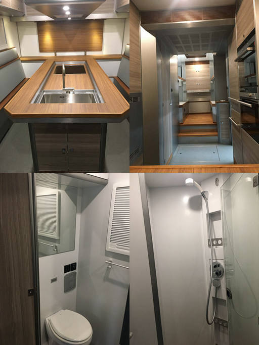 1.發(fā)動機最大凈功率397KW。2.側防護為裙箱結構,材質為高強度鋁合金,離地高度為545(mm),后防護主體為鋼管(Q345/120×60,mm),離地高度為:400mm,連接方式為:螺接。3.車輛長度/前懸/后懸/后伸對應關系為:10550/1510/2365/500,mm。4.車輛ABS采用雙通道前后式控制,型號為0 486 106,生產廠家為KNORR。5.車頭內藏式燈具為選裝,僅限人員在野外非道路狀況下工作和生活照明使用。6.頂部選裝太陽能板(最多12塊,可根據電力配置不同而減少)。7.車廂內部配備可變化的桌椅、廚具、洗菜盆、升降床、洗臉盆、馬桶、淋浴、空調等生活設施。 |