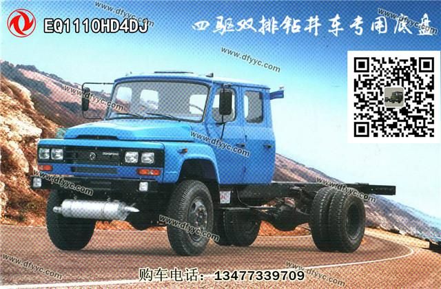 東風(fēng)尖頭四驅(qū)雙排越野鉆井車詳細(xì)配置:采用東風(fēng)EQ1110HD4DJ型原廠四驅(qū)越野底盤,尖頭雙排座駕駛室,玉柴160馬力正宗國四發(fā)動(dòng)機(jī),五檔變速箱,3.5噸前驅(qū)動(dòng)橋,后十噸東風(fēng)德納車橋,232mm(6+5)雙大粱,輪胎為9.00R20鋼絲胎。