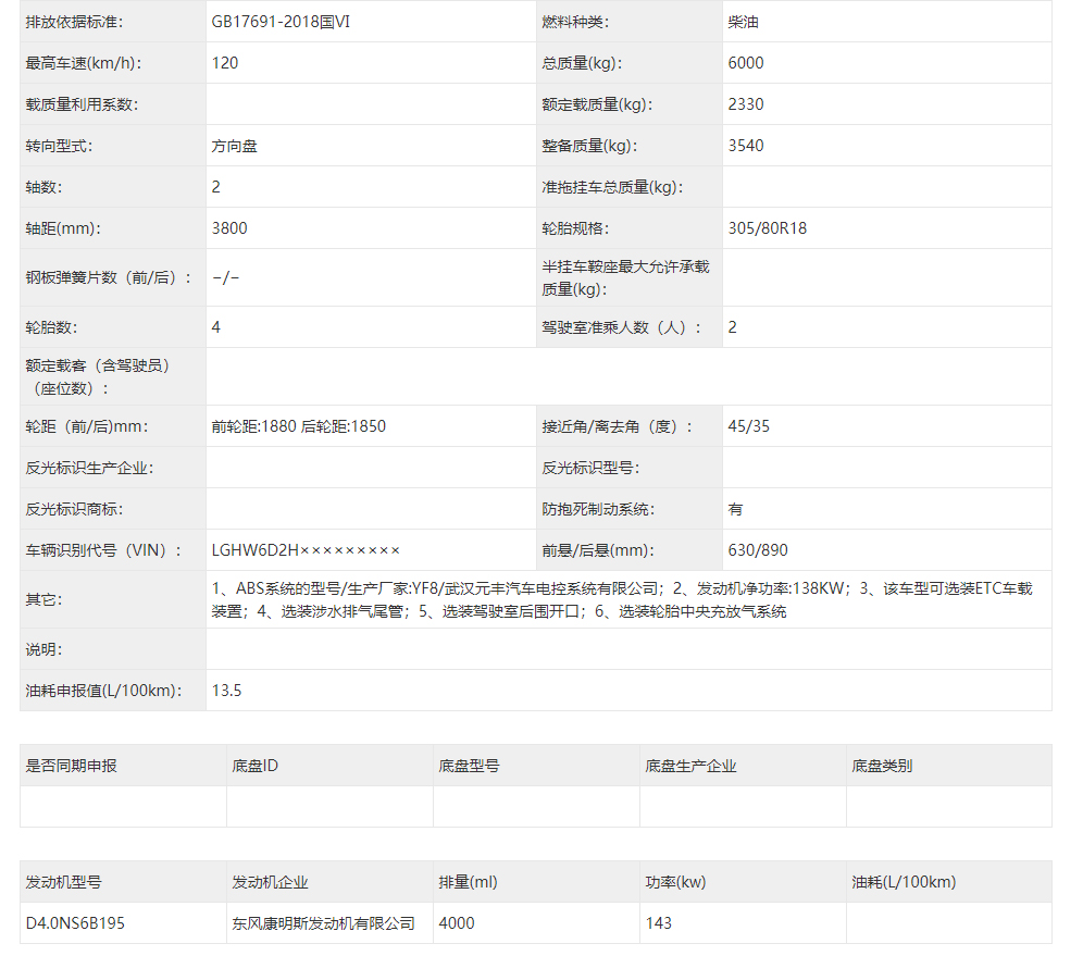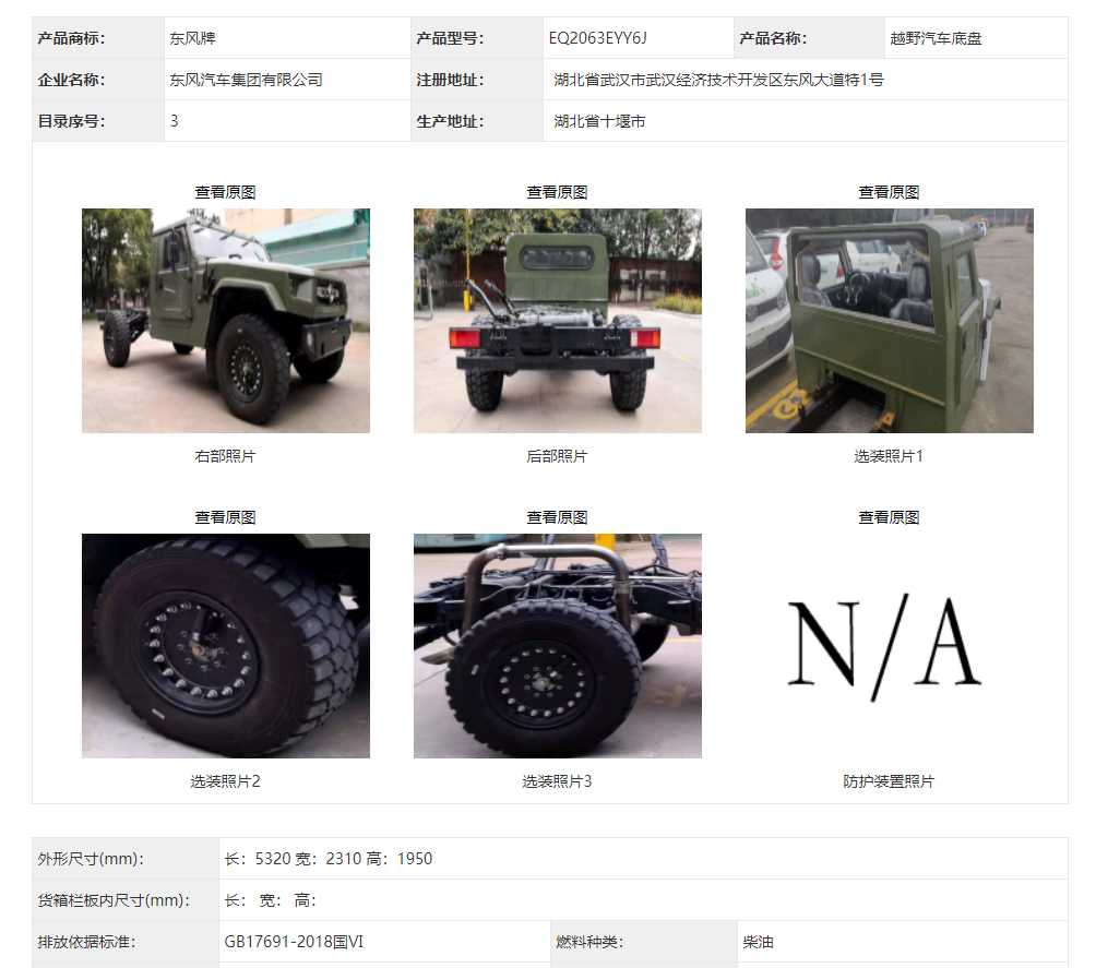 東風猛士民用版EQ2063EYY6J型四驅越野汽車底盤在340批次公告中公示成功