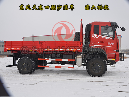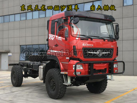 全新國(guó)六東風(fēng)四驅(qū)六驅(qū)沙豹沙漠車為特殊行業(yè)精心打造,適合全地形無(wú)路區(qū)域的全時(shí)4×4、6×6驅(qū)動(dòng)車型,選用康明斯9升國(guó)六發(fā)動(dòng)機(jī),動(dòng)力涵蓋340---400馬力,動(dòng)力強(qiáng)勁、性能可靠,采用7噸及10噸級(jí)雙級(jí)輪減前、后橋,離地間隙大、通過性好,前、中后橋配備輪間、軸間差速鎖裝置可適應(yīng)極惡劣道路狀況下的通過要求,先進(jìn)的遠(yuǎn)距離電控氣動(dòng)裝置可實(shí)現(xiàn)高、低檔及前橋鎖止功能的轉(zhuǎn)換,多管旋流式三級(jí)空濾進(jìn)氣系統(tǒng)可有效地阻止極細(xì)微的粉塵進(jìn)入發(fā)動(dòng)機(jī),外接式中央充放氣裝置可同時(shí)或單獨(dú)快速調(diào)節(jié)輪胎氣壓,越野和沙漠輪胎的互換可使車輛通過性適合各種地形地貌,選裝前后液壓絞盤等裝置能使車輛在各種環(huán)境下保持良好的狀態(tài)及自救互救功能,沙漠車使用工況:用于無(wú)路地域的貨物運(yùn)輸,適應(yīng)沙漠、浮土、戈壁、礫石、泥濘、山地、崎嶇、冰雪等路況。耐溫±45℃,可作為石油物探、地質(zhì)勘查、大地測(cè)量、文物考古、草原監(jiān)理、畜牧防疫、森林消防、邊境巡邏、沙漠旅游等行業(yè)用車,是改裝專業(yè)工程車如:地震儀器、爆破器材運(yùn)輸、沙漠冷藏、沙漠隨車起重運(yùn)輸、工程搶險(xiǎn)、林業(yè)吊運(yùn)、搶險(xiǎn)救災(zāi)等車輛及越野房車的理想底盤。
