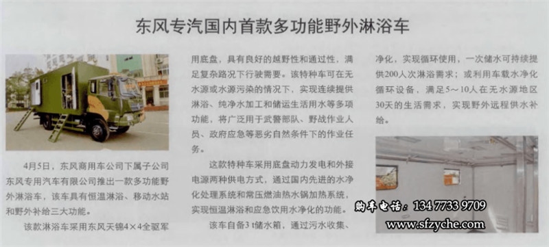 東風(fēng)專汽推出國內(nèi)首款東風(fēng)四驅(qū)多功能野外淋浴車