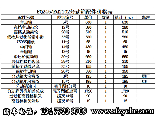 東風(fēng)軍車EQ245/EQ2100E/EQ2100E6D六驅(qū)軍車分動箱配件報(bào)價(jià)表