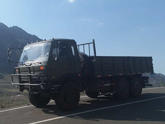 東風(fēng)六驅(qū)越野DFS5160TSML2型沙漠車_東風(fēng)老款153型六驅(qū)越野沙漠車越野性能:東風(fēng)康明斯6缸BT系列210馬力柴油增壓發(fā)動(dòng)機(jī) 12.5R20鋼絲子午線越野花紋加寬型輪胎 軍工機(jī)械式六檔變速箱 新型發(fā)動(dòng)機(jī)、全油路、進(jìn)氣道自動(dòng)電加熱系統(tǒng),可在-41℃環(huán)境下在駕駛室內(nèi)一鍵啟動(dòng) 250mm雙層車架,承載能力加倍提升 350L超大油箱,滿足1300公里無需加油 三座單臥、環(huán)形儀表臺(tái)新款駕駛室 后置絞盤,牽引力44100N(選裝)?稍诖嗽揭暗妆P基礎(chǔ)上改裝成越野廂式車,越野油罐車、越野灑水車、越野消防車、越野隨車吊、越野吸污車、越野平板車、越野運(yùn)兵車等專用越野車型。