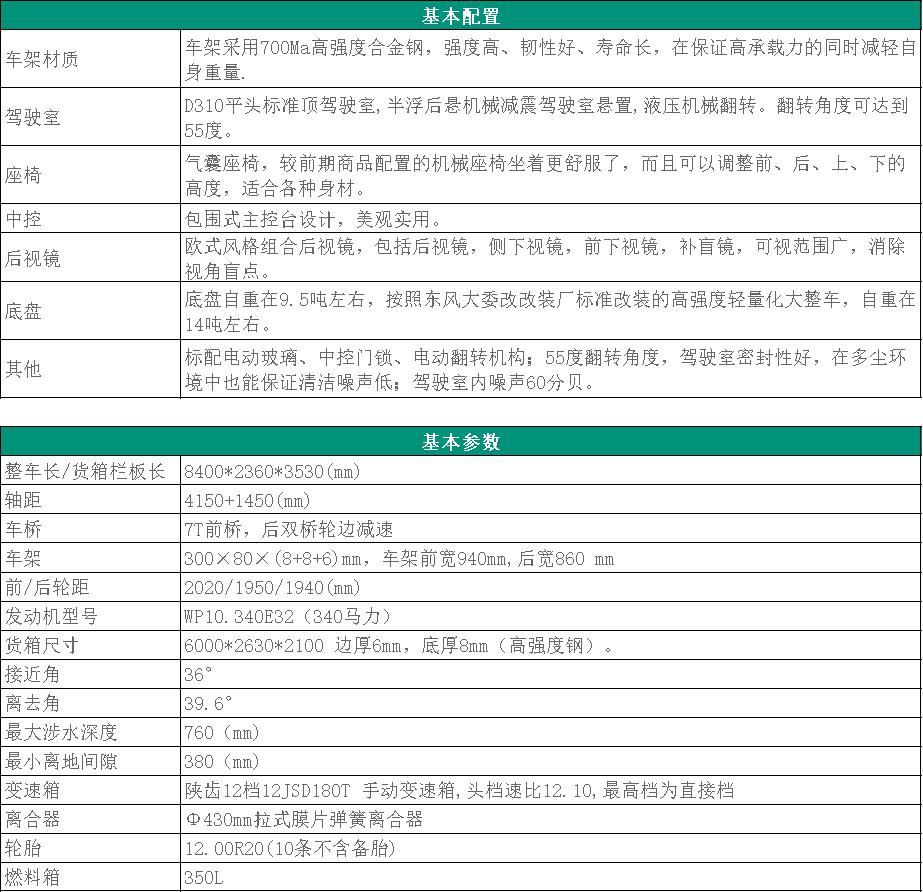 東風(fēng)大力神KC六驅(qū)自卸車配置參數(shù):DFL3251KC型六驅(qū)大力神自卸車,采用天龍大力神KC駕駛室,三段式保險(xiǎn)杠,液壓翻轉(zhuǎn),帶原廠空調(diào),濰柴國三WP12.340型340馬力發(fā)動(dòng)機(jī),法士特十二檔變速箱,軸距4500+1400mm,株齒分動(dòng)箱,北奔9噸前驅(qū)動(dòng)橋,選裝13/16噸輪減中后橋,輪減、差速鎖,大梁300mm自卸專用梁,輪胎12.00R20鋼絲胎10+1條,5.6米-6米自卸貨箱,車廂采用邊10底12mm鋼板,加裝淋水器。