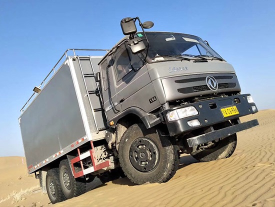 東風六驅(qū)國五越野廂式車簡介:采用東風原廠六驅(qū)國五越野底盤EQ2220GD5DJ型,駕駛室為老款153,新款D913兩種可以選擇,康機190馬力帶增壓,機械式六檔變速箱,3.5噸軍檢分動箱,4.5噸雙聯(lián)式軍用驅(qū)動前橋,5噸軍用貫通式雙后橋,方向助力,離合助力,前橋介入高低檔均采用電控式,315/80R22.5越野輪胎,軸距3500+1250mm,ABS,隨車工具及備胎各一套。