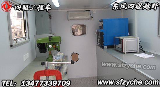 廂體頂部封閉,不可開(kāi)啟?膳溲b功率相當(dāng)、其他型號(hào)的發(fā)電機(jī)組。駕駛室前方安裝電動(dòng)絞盤(pán)、廂體前部安裝備胎和可升降照明裝置、廂體內(nèi)部安裝有發(fā)電機(jī)組、電焊機(jī)、線(xiàn)纜盤(pán)、臺(tái)虎鉗、切割機(jī)、工作臺(tái)等維修工具。側(cè)防護(hù)、后防護(hù)與車(chē)輛均采用焊接連接,材料均為:Q235,后防護(hù)斷面尺寸(mm):100×60, 離地高度:500 mm.