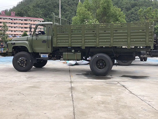 東風(fēng)牌EQ1093F型四驅(qū)載貨汽車詳細(xì)配置:采用康明斯B170-33柴油發(fā)動機,機械式六檔變速箱,軸距3950mm,單片干式φ325mm離合器,2.7T驅(qū)動前橋, 7.8T驅(qū)動后橋,232×75×6.5 mm車架,9.00-20尼龍?zhí),東風(fēng)140尖頭單排駕駛室,斷氣剎,動力轉(zhuǎn)向。