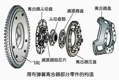 周布彈簧離合器的構(gòu)造特點(diǎn)是螺旋彈簧沿圓周均勻分布。周布彈簧式離合器的主、從動部分、壓緊部分均安裝在離合器殼內(nèi)、外及駕駛室中。